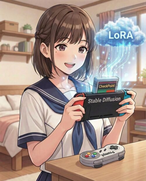 たとえば「寧々さんを描きたい!」と思ったら、寧々さんのキャラを学習させてるLoRAを探してきて適用すれば、楽に実現できるわけです。