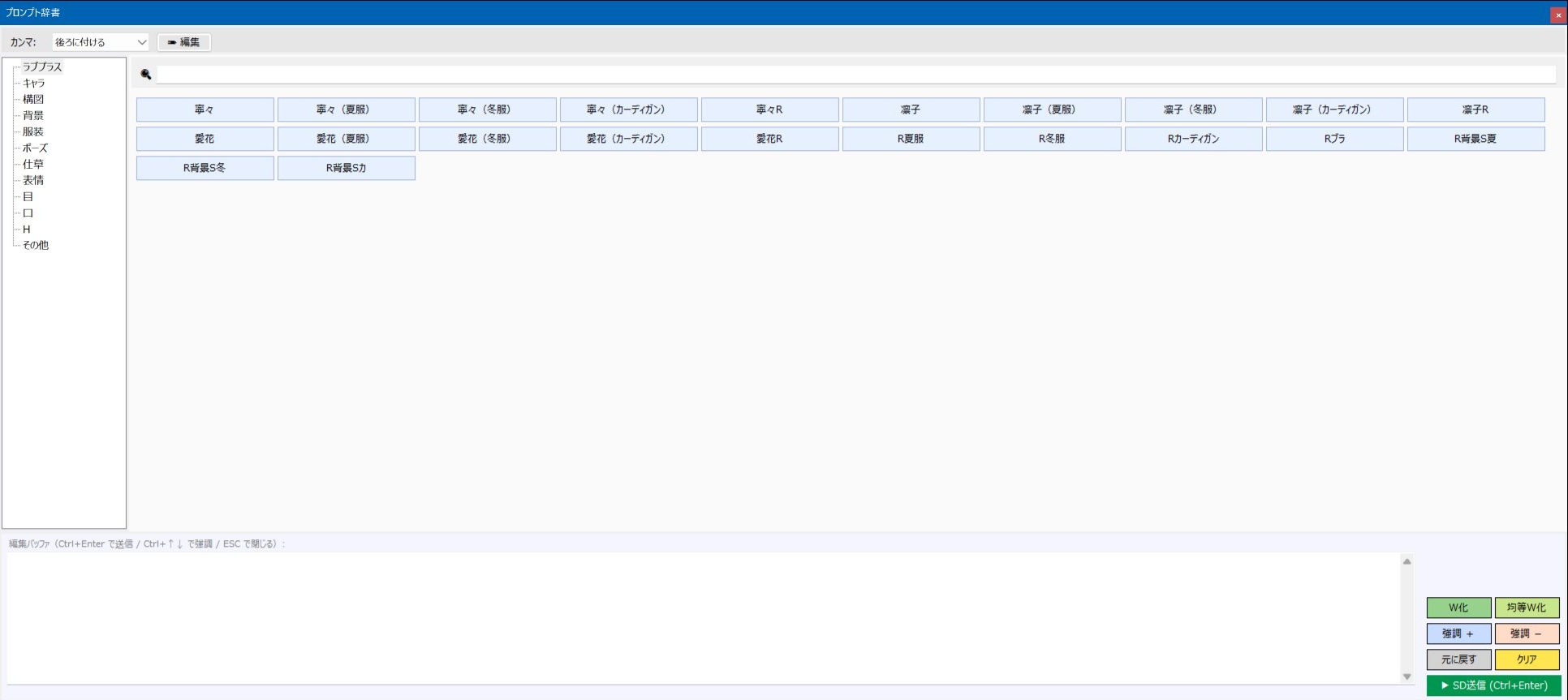 ・別窓でプロンプト辞書ウィンドウを表示(設定でカテゴリ・プロンプト内容をボタン追加可能)
